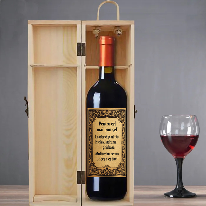 Etichetă dedicată unui șef respectat, cu un mesaj personalizat ce reflectă autoritatea, înțelepciunea și capacitatea de a conduce cu viziune. Un gest memorabil și onorant.