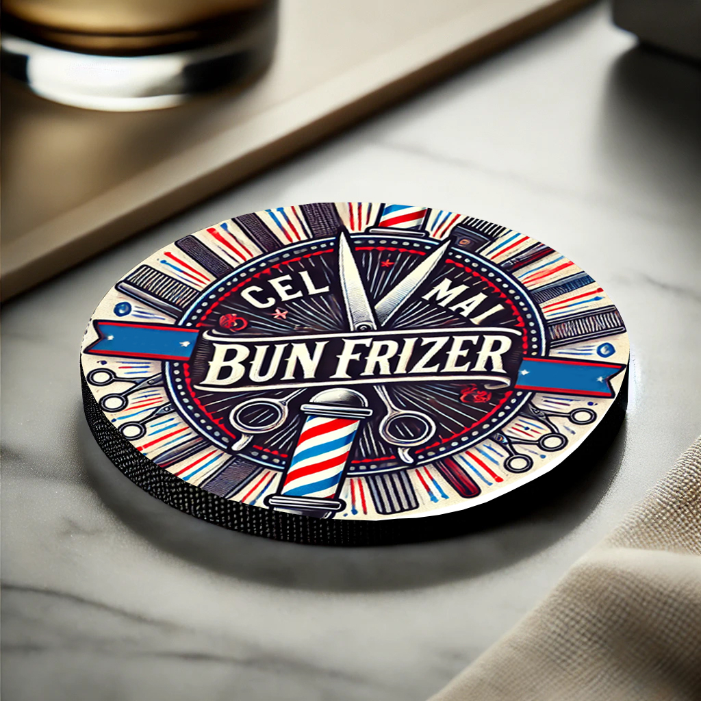 Acest set de 5 suporturi de pahar, elegante și funcționale, este creat special pentru a exprima recunoștința și admirația față de un frizer – un profesionist al stilului, care aduce încredere și rafinament fiecărui client. Este cadoul ideal pentru a sărbători creativitatea, precizia și pasiunea pentru meseria sa. Un cadou pentru frizer ideal, potrivit pentru orice ocazie.