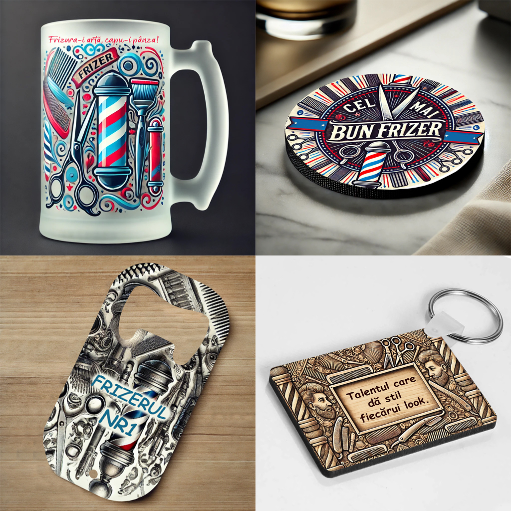 Set Personalizat Cadou Frizer– Halba,Suporti Halba,Desfacator,Breloc