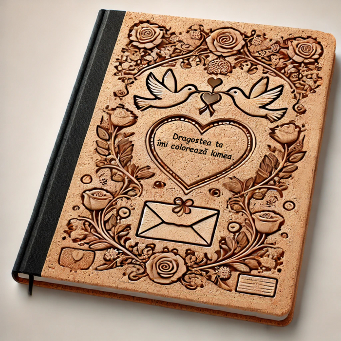 • Design romantic și personalizat: Coperta simbolizează iubirea voastră, aducând un strop de magie fiecărei zile.
