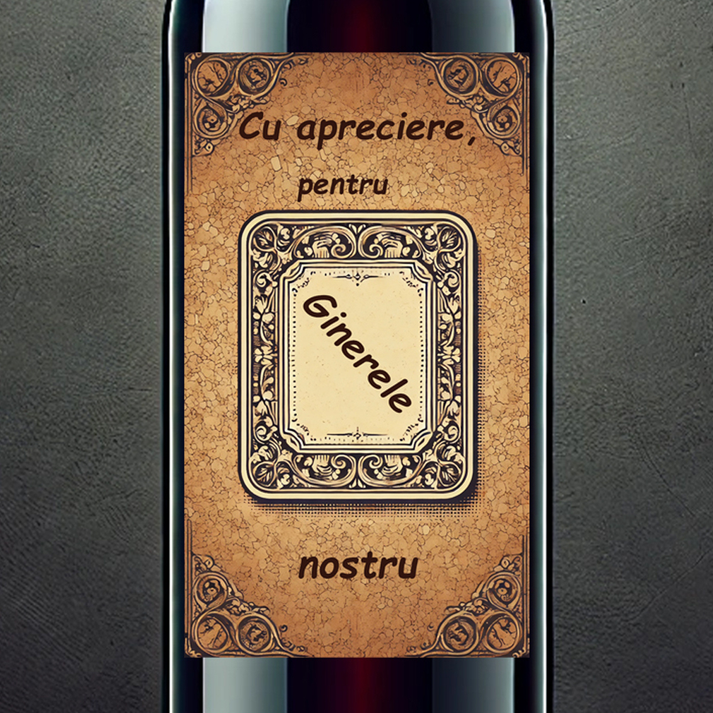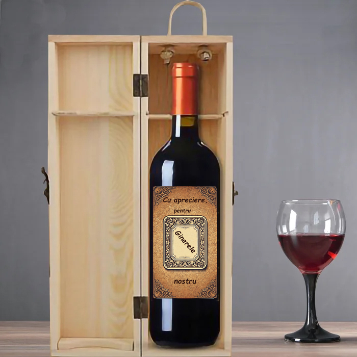 ✔ Sticlă de vin personalizată (750 ml): cu o etichetă elegantă, dedicată respectului, încrederii și momentelor importante de familie. Un mod rafinat de a spune „Noroc!” pentru începuturi frumoase și amintiri noi.