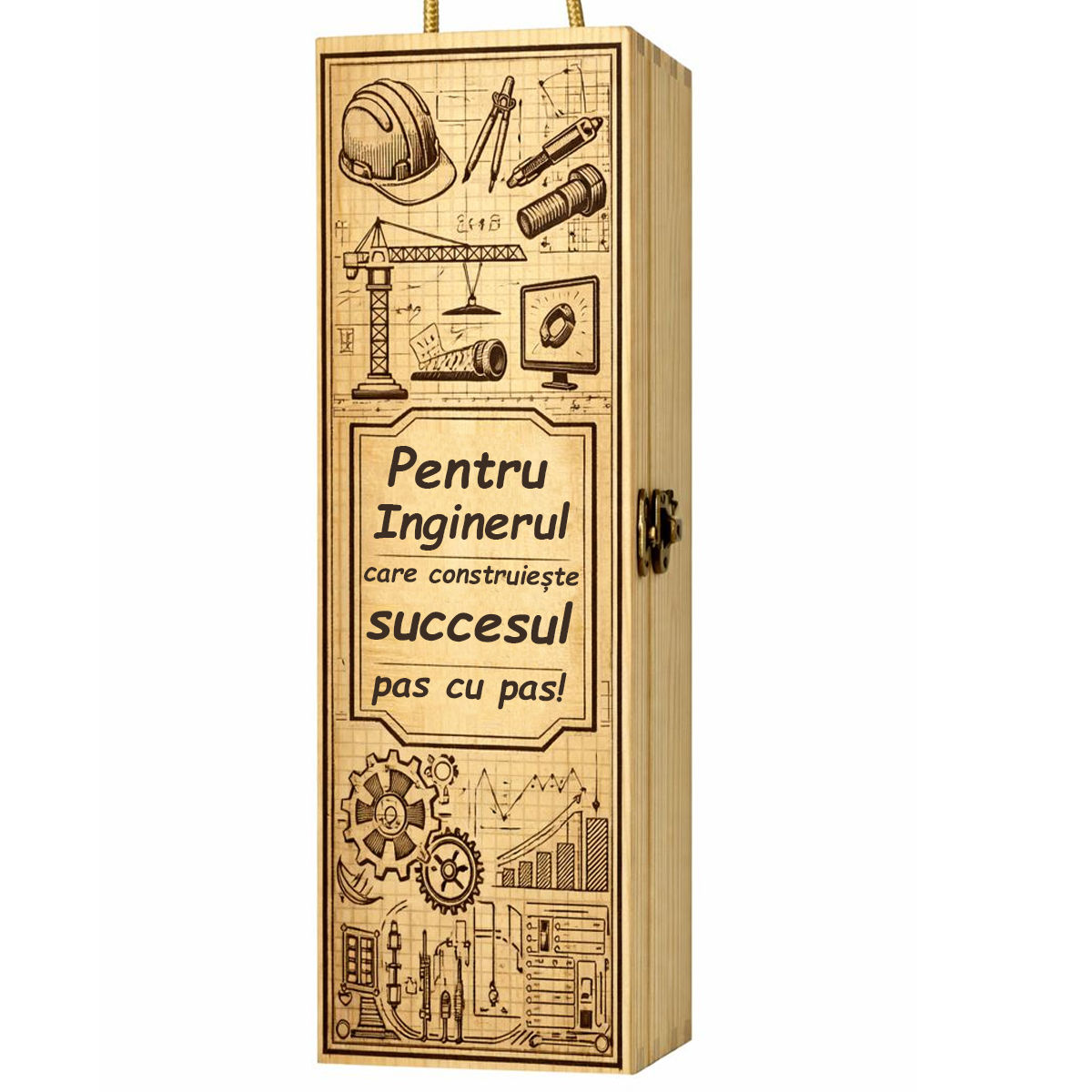 ✔ Cutie de vin personalizată: realizată din lemn natural, cu finisaj rustic și design tematic adaptat pentru un inginer. Se potrivește perfect unei sticle de 750 ml și adaugă o notă de distincție oricărui gest de apreciere.