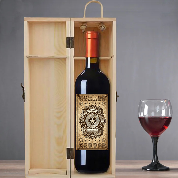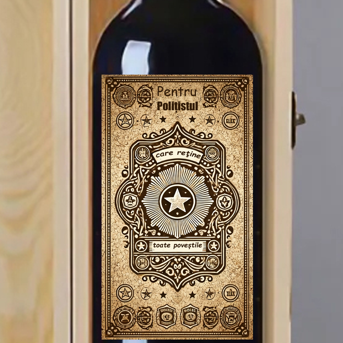 Cu etichetă personalizată dedicată polițiștilor, această sticlă este un omagiu adus curajului și responsabilității de a servi și proteja. Un cadou de impact, cu valoare simbolică.