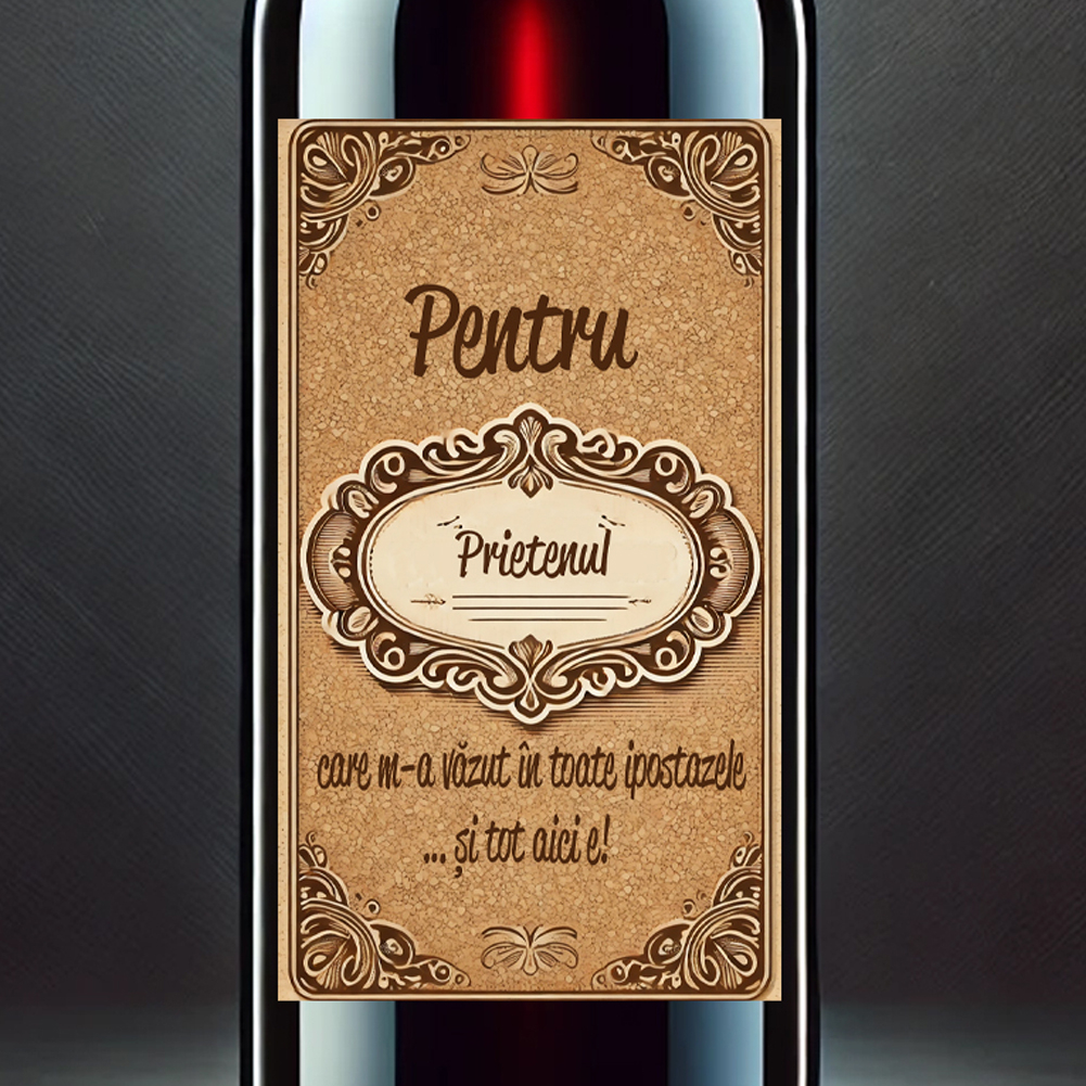 ✔ Sticlă de vin personalizată (750 ml): cu o etichetă elegantă, dedicată loialității, momentelor faine și prieteniilor adevărate. Un mod rafinat de a spune „Noroc!” pentru toate amintirile și pentru cele care urmează.