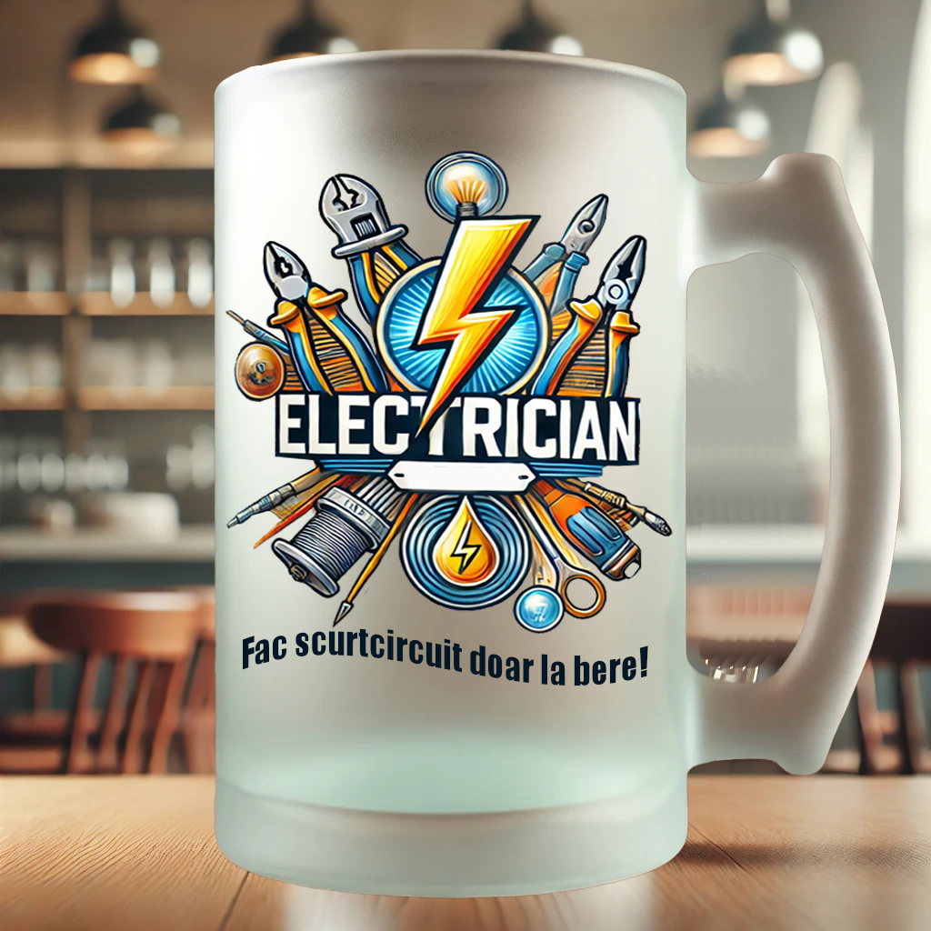 Această halbă de bere, robustă și practică, este creată special pentru a celebra munca și dedicația electricianului – o persoană esențială în viața de zi cu zi, care aduce lumină și siguranță în casele și comunitățile noastre. Este cadoul perfect pentru a exprima aprecierea față de priceperea și responsabilitatea sa.
