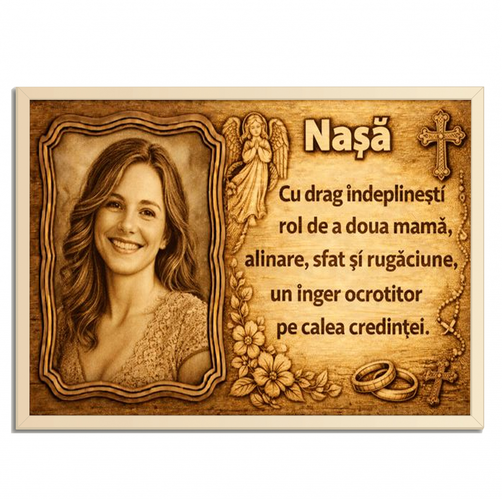 Tablou din lemn personalizat – cadou pentru Nașă
