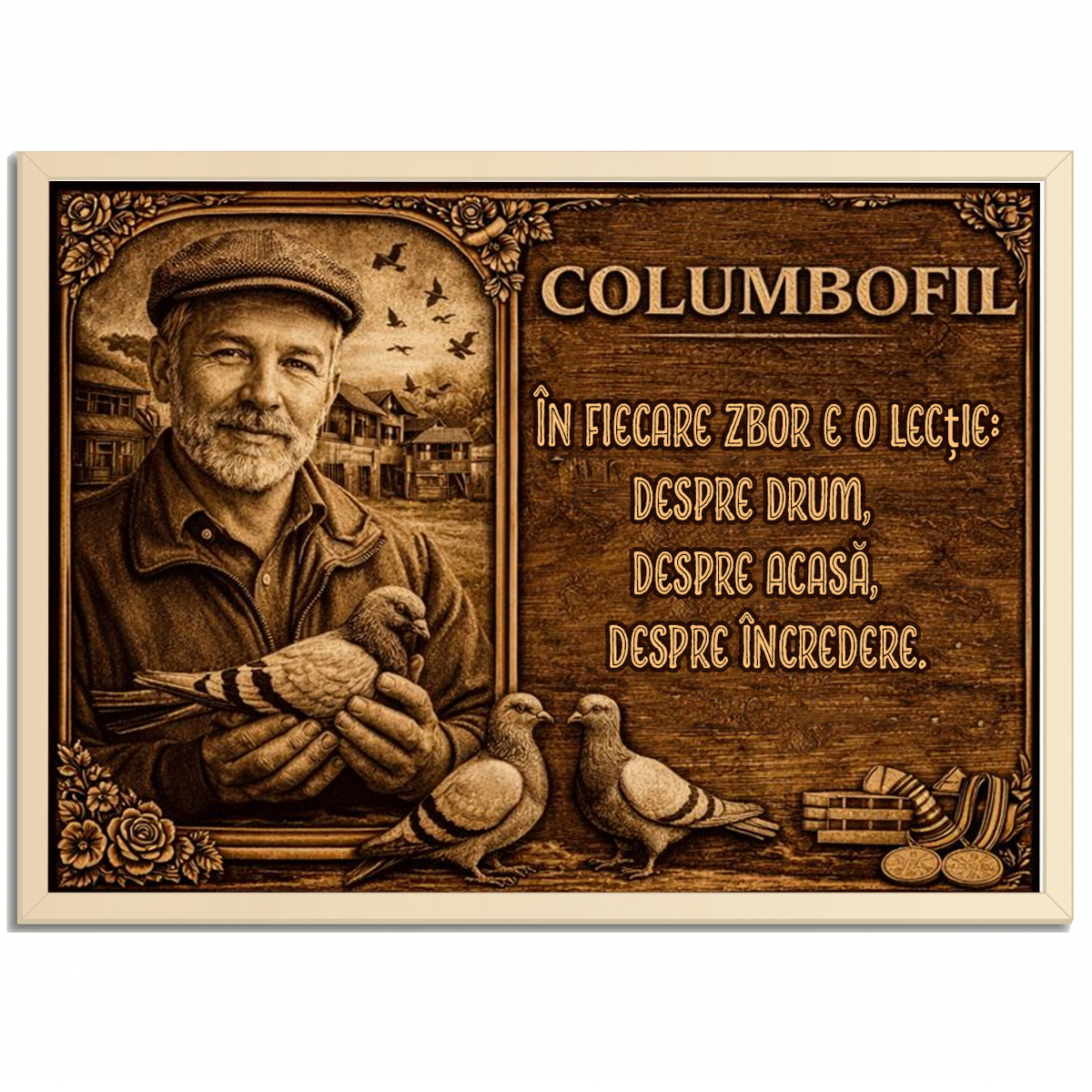 Tablou din lemn personalizat – cadou pentru Columbofil