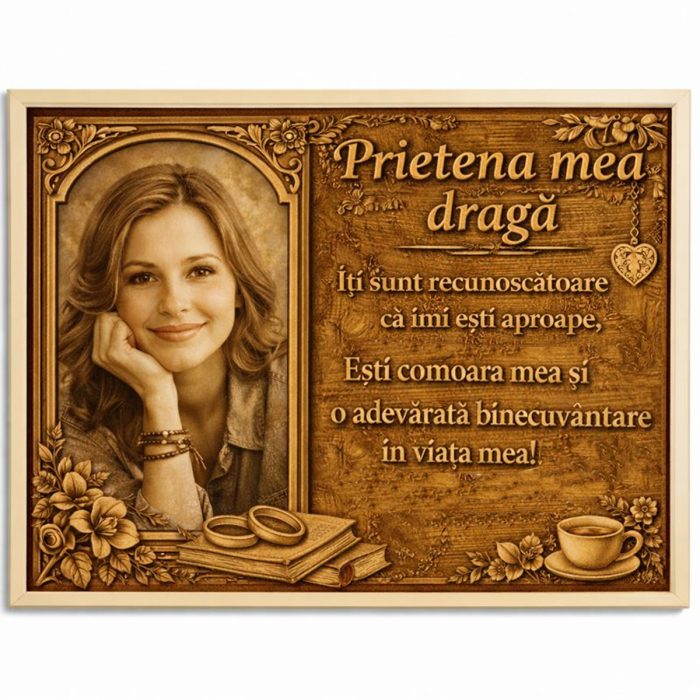 Cauți un cadou pentru prietenă care să fie personal, emoționant și diferit de cadourile clasice? Un tablou din lemn personalizat cu fotografie transformă o amintire frumoasă într-o piesă de decor cu valoare sentimentală: o poză cu voi două, o amintire din vacanță, o ieșire memorabilă, o fotografie din copilărie sau un moment spontan care vă reprezintă.