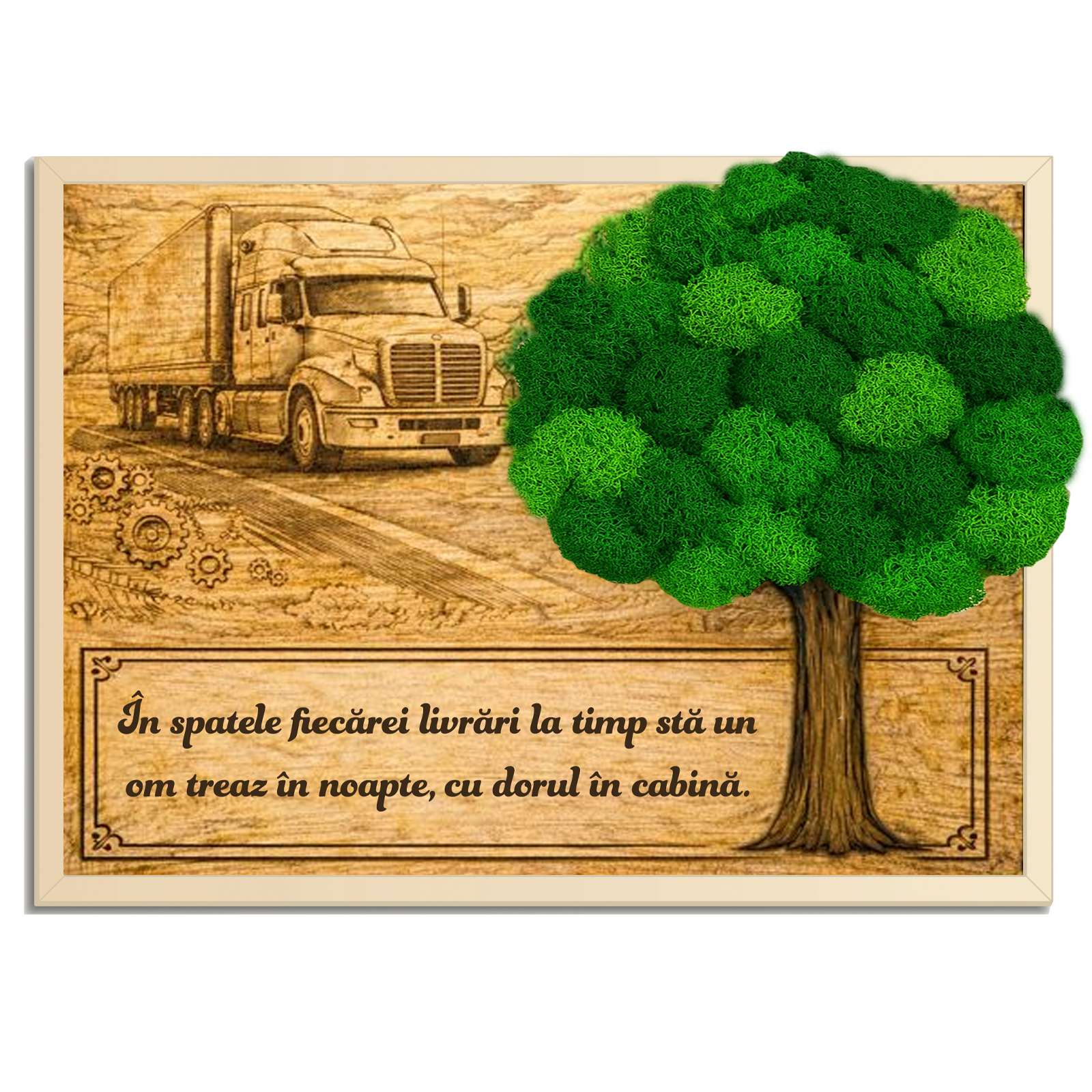 Tablou cu licheni personalizat cu text – cadou pentru Șofer de TIR