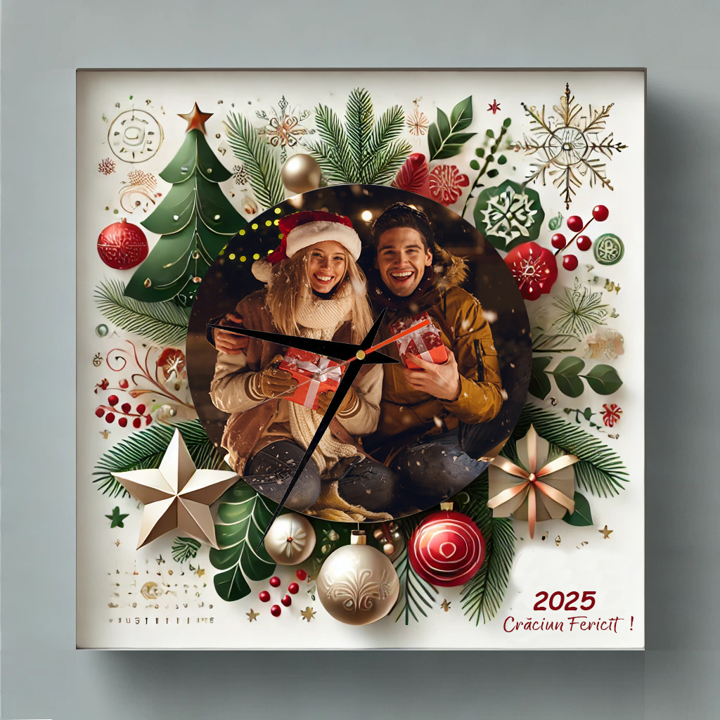 Adaugă un strop de magie festivă în casa ta cu acest ceas personalizat de Crăciun! Proiectat cu atenție la detalii și fabricat din lemn mdf de calitate, acest ceas pătrat aduce un aer elegant și cald oricărui spațiu. Ideal pentru a păstra amintirile dragi aproape, ceasul permite adăugarea unei fotografii speciale, devenind un element unic de decor ce va lumina fiecare sărbătoare.