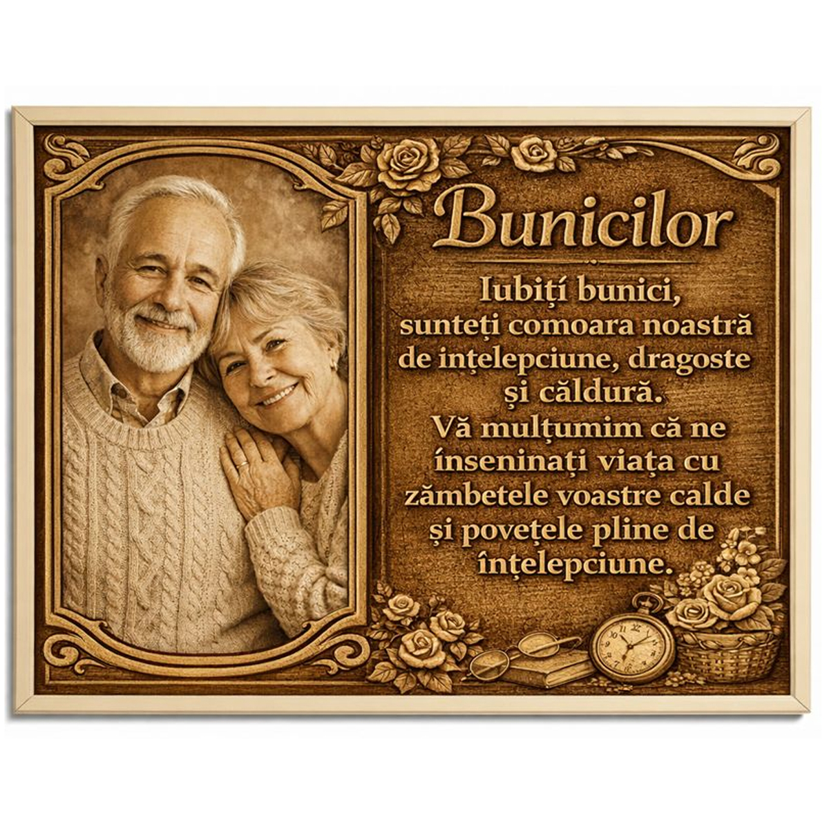 Un cadou pentru bunici ar trebui să fie plin de emoție și să păstreze o amintire de familie. Un tablou din lemn personalizat cu fotografie este perfect pentru a transforma un moment drag într-o piesă de decor cu valoare sentimentală: o poză cu nepoții, o fotografie de familie, o imagine de la o aniversare, sărbători sau o amintire dintr-o vacanță împreună.