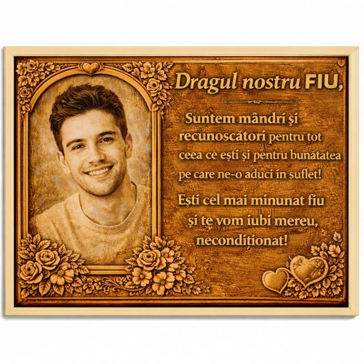 Cauți un cadou pentru fiu care să fie personal, emoționant și să rămână o amintire peste ani? Un tablou din lemn personalizat cu fotografie este perfect pentru a păstra un moment special: o poză cu voi, o fotografie din copilărie, o amintire din vacanță, o reușită (absolvire, competiție), un moment dintr-un hobby sau o imagine care îl reprezintă.