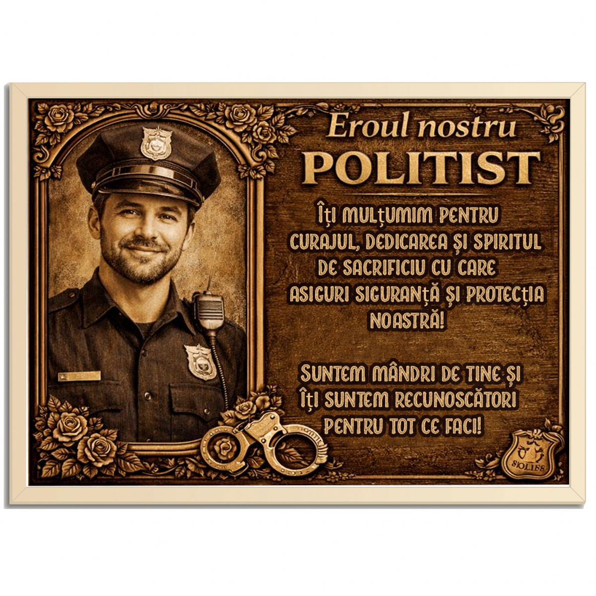 Cauți un cadou pentru polițist care să fie personal, respectuos și memorabil? Un tablou din lemn personalizat cu fotografie este o alegere potrivită pentru a păstra un moment important: o fotografie în uniformă, o poză cu echipa, un cadru de la o ceremonie, o avansare, absolvire, pensionare sau o amintire de familie care înseamnă mult.