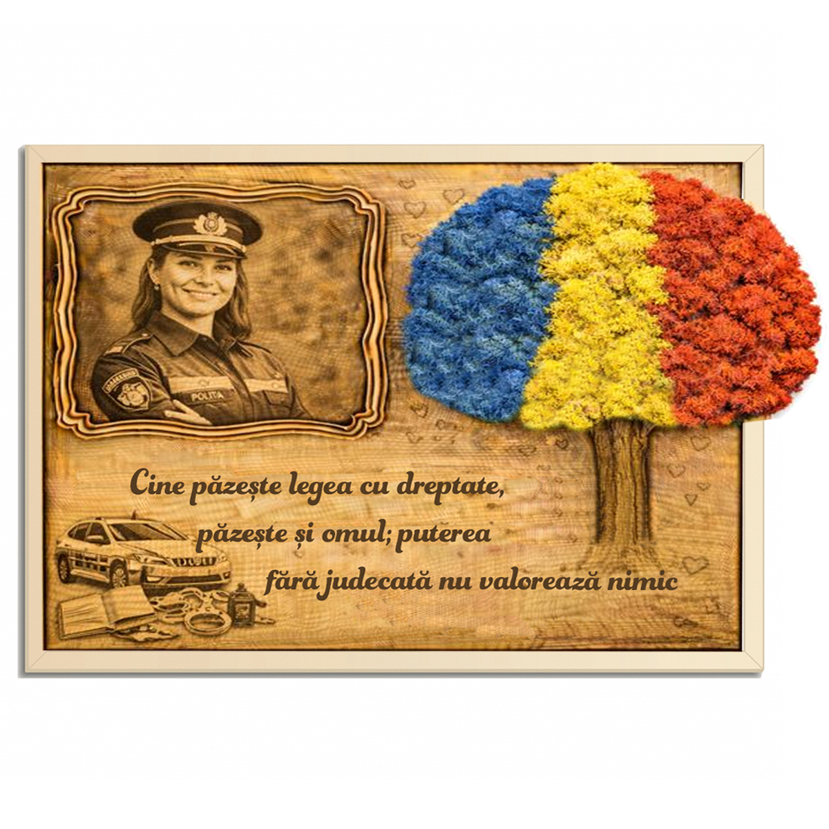 Tablou cu licheni personalizat – cadou pentru Polițiști